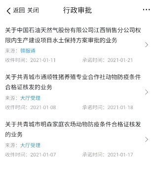 办事人员通过“赣政通”下载材料,进行核查,符合规格既可在线同意事项办理。