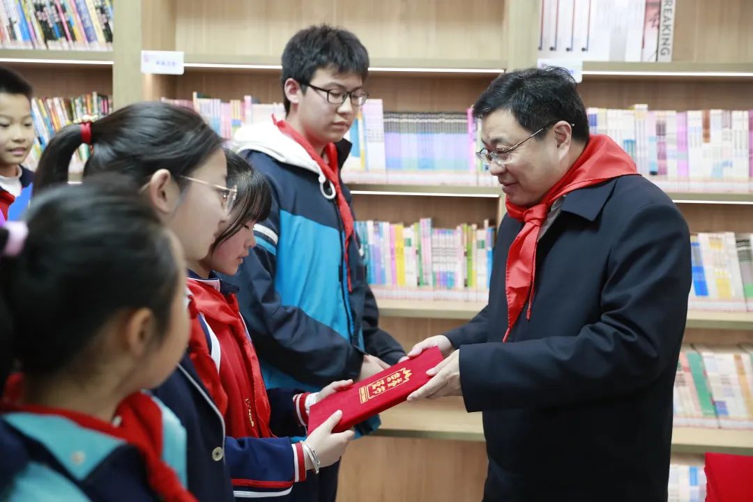 在共青小学图书室,一场“认识雷锋”主题队课正在进行,授课老师通过一个个鲜活的事例,讲述了雷锋同志无私奉献的一生。卢治轩与少先队员们认真聆听,并齐声唱响《学习雷锋好榜样》,现场师生互动其乐融融。授课结束后,卢治轩为10名共青城市2022年度新时代好少年颁发荣誉证书,向受到表扬的好少年表示祝贺。