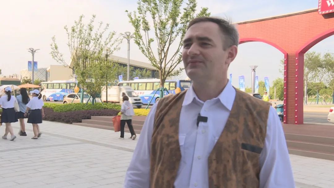 俄罗斯游客 马克西姆 万尼亚:“俄罗斯的共青城和中国的共青城是两个完全不同风格的城市,带着这种兴趣来到这里看一看区别在哪里。来到这个城市之后,感觉这个城市很整洁,很漂亮,都是新的,感觉非常好。”
