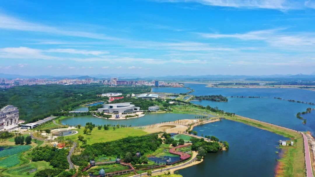登上共青塔瞰城市全景,东湖、西湖、珍珠湖如颗颗珍珠,相连成串,呈现出“六园相连、九水相通、堤路结合、城景相融”的生态画卷。