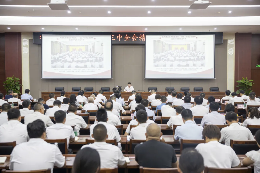 根据九江市委统一部署,9月4日,学习贯彻党的二十届三中全会精神九江市委宣讲团报告会在共青城市举行。九江市委宣讲团成员、九江市教育局党委书记、局长何明作宣讲报告。共青城市委副书记、市长刘阳青主持报告会。市人大常委会主任况泉水,市政协主席杨祖荣,赣江新区共青组团管委会专职主任汪玉贵,九江共青城高新区管委会主任陶智化,市领导周金辉、刘小燕、许巨峰、胡胃东、郑斌等参加会议。