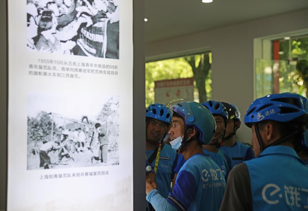 ▲观看共青城历史展板
