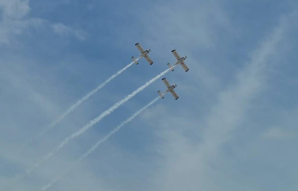 在翱翔篇,山河SA60L运动飞机的阿若拉三机编队在湛蓝的空中翻滚、俯冲、低空平飞、迎面对冲,毒蛇XA-42特技飞行则在100米以下的超低空做出大坡度盘旋、垂直横滚、俯冲横滚、“死亡”翻滚、半筋斗翻转、水平8字、跃升盘旋、水平多次横滚等高难度动作。