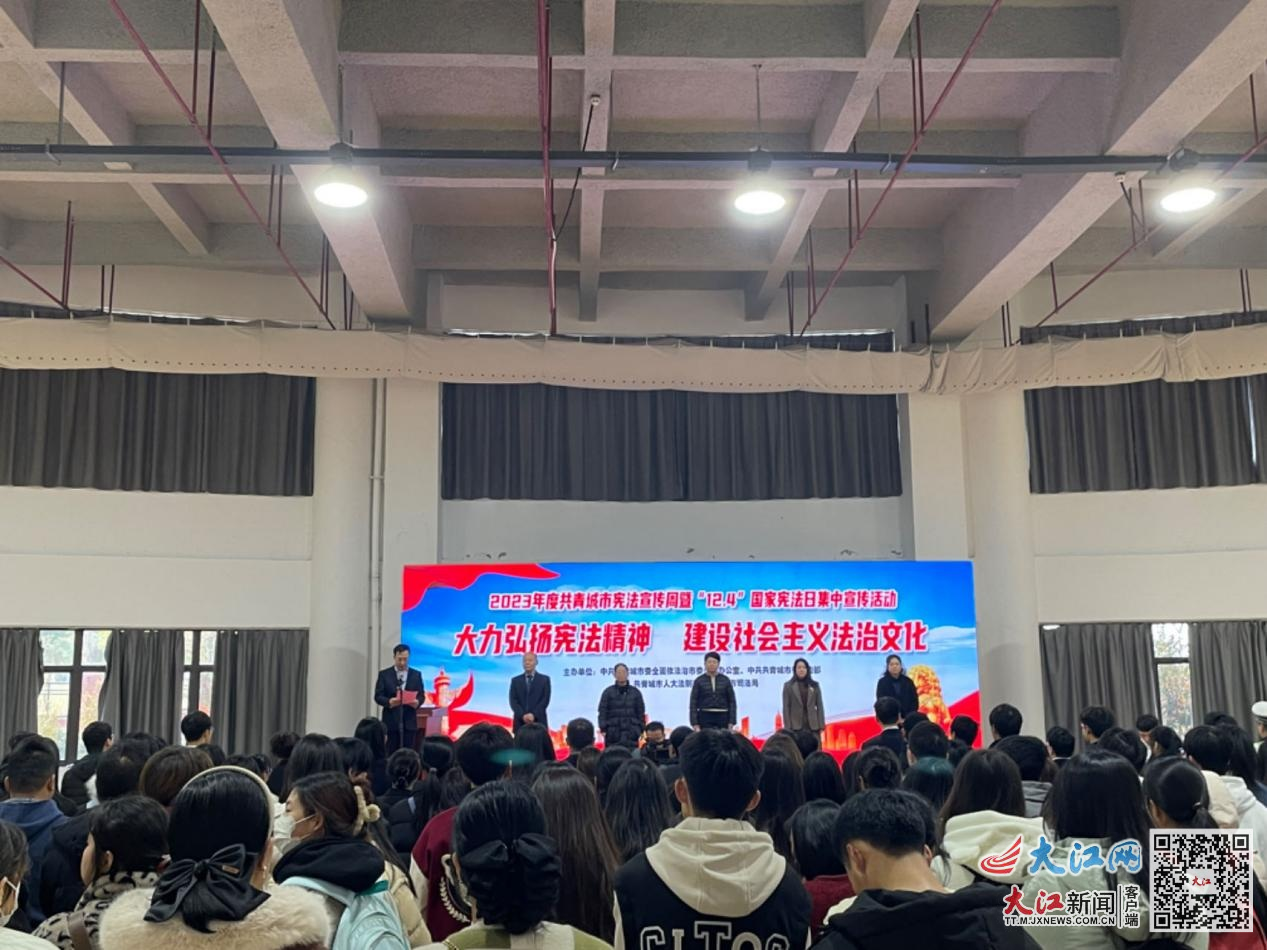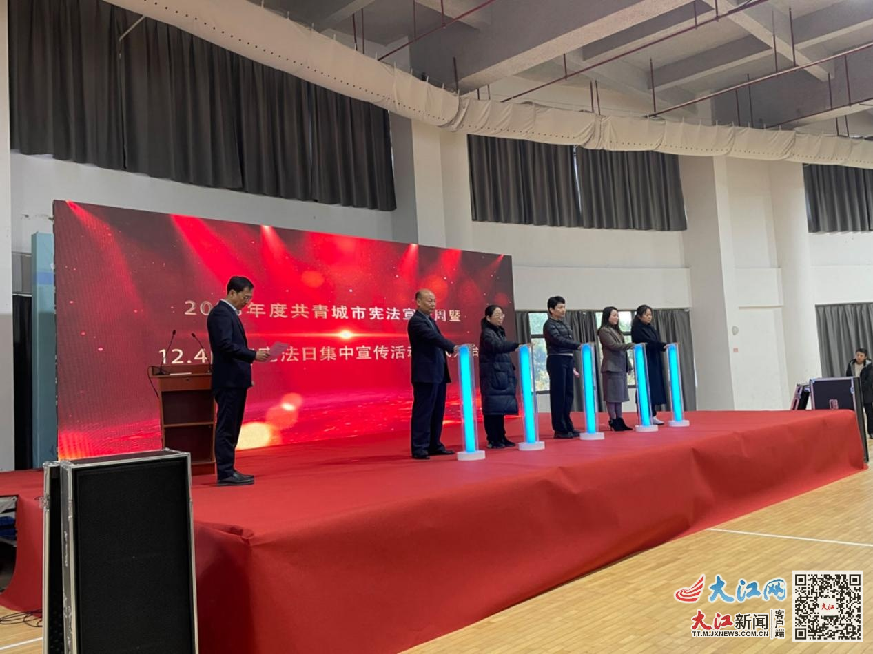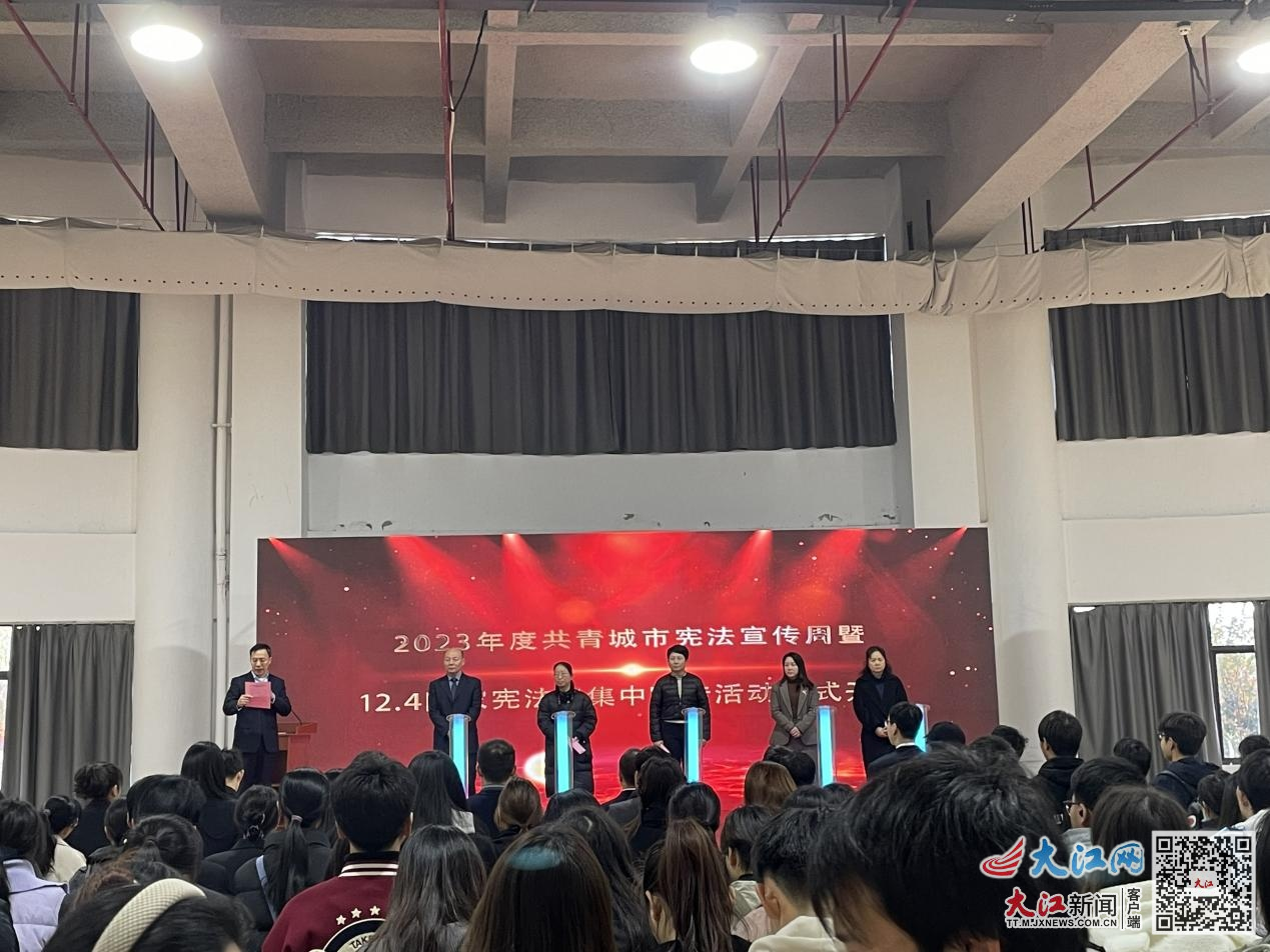 活动开始,共青城市委宣传部副部长曾花萍向全部在场人员宣读了加强青少年法治宣传教育的重要意义,共青城市人大法制委主任彭怀明带领现场国家工作人员向国徽进行宪法宣誓,共青城市委常委、政法委书记戴轶苏作重要讲话。在场人员共同启动2023年度共青城市宪法宣传周暨“12·4”国家宪法日集中宣传活动。