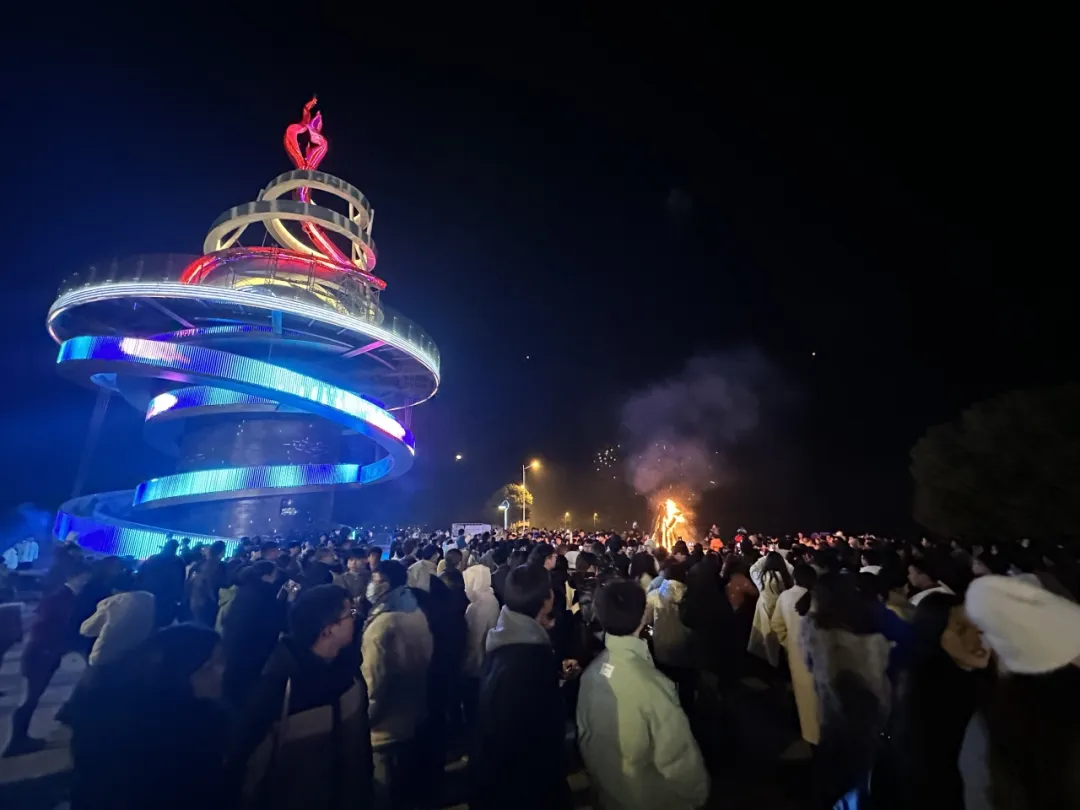 岁末之时,夜幕下篝火悄然绽放。在这辞旧迎新时刻,来富华公园喷泉广场与篝火共舞。