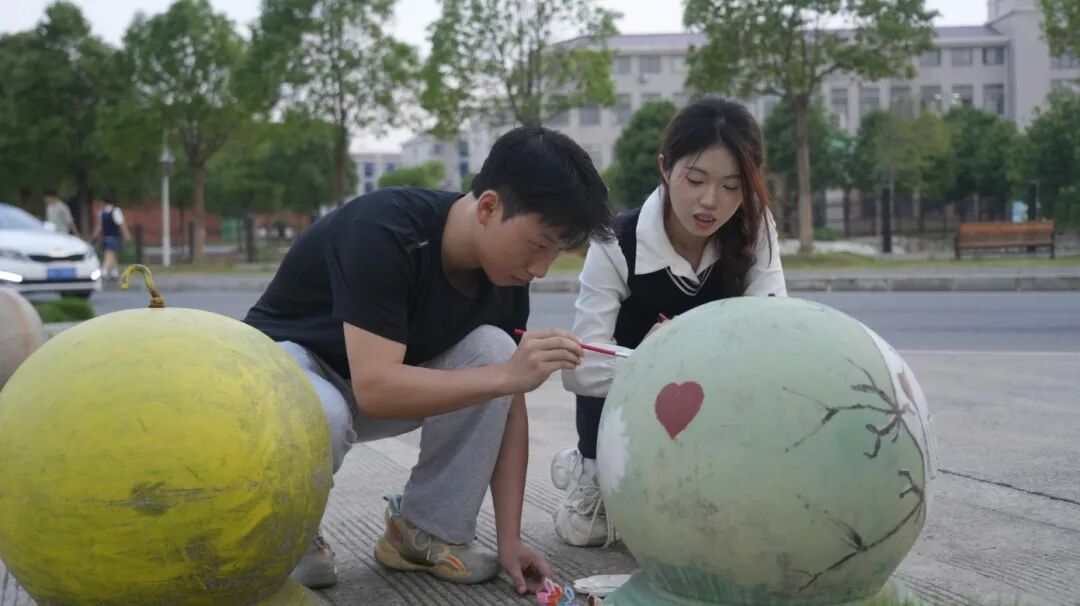 石球、台阶全变 “画板”美术社已产出20多个作品