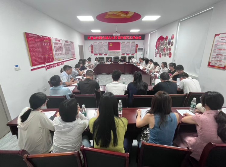 茶山街道戴家垅社区联合共建单位市委宣传部、市卫健委、市融媒体中心召开创文工作会议。会议聚焦环境整治、宣传氛围打造、居民动员等核心环节展开研讨,明确推进方向以保障工作有序推进。