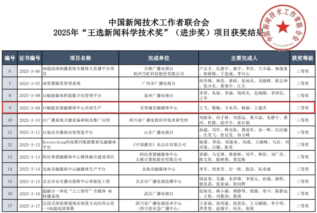公示!共青城市融媒体中心荣获2025年“王选新闻科学技术奖”