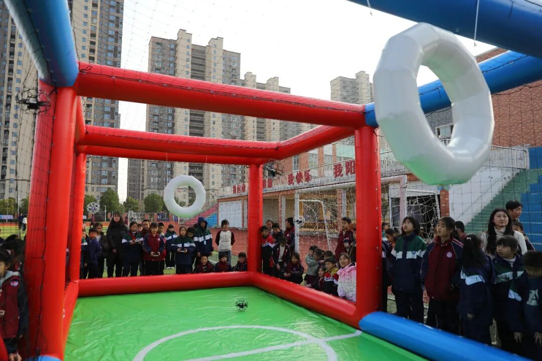 科技产品展示区更是把氛围推向高潮!南昌航空大学科学技术学院的航模飞行表演酷炫来袭,飞机在空中灵活穿梭,引得同学们阵阵惊呼;中航无人机学院的无人机足球趣味十足,科技感与竞技感拉满;九江科技职业大学带来的机器人、机器狗表演更是“圈粉”无数,灵活的动作让现场欢呼声不断。