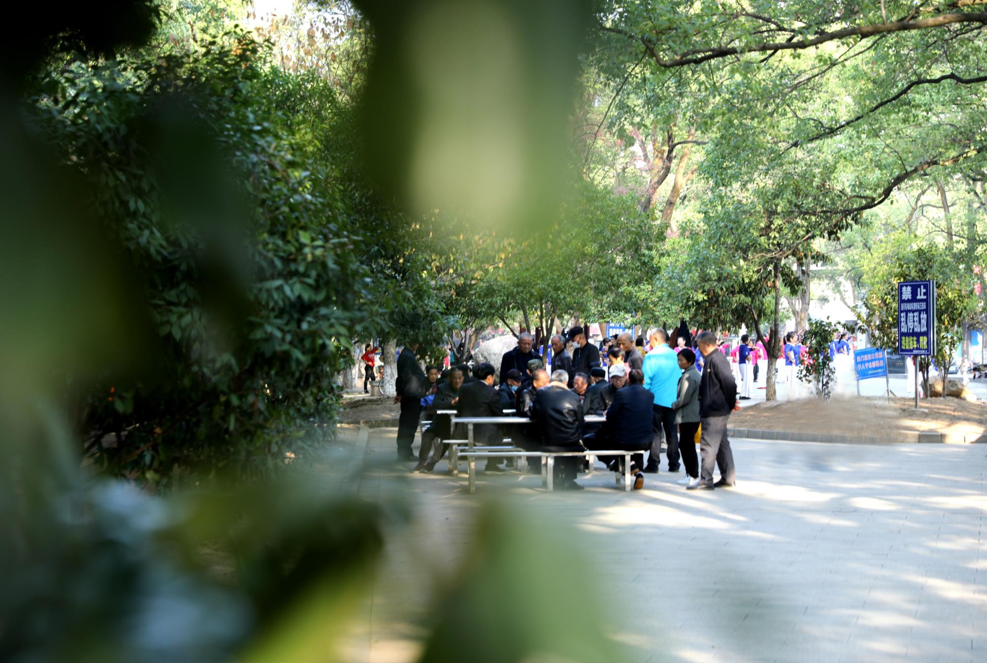 早晨,在共青城市西湖公园,微风拂过,翠绿的嫩草像一大块柔软的地毯铺展开来,老人们聚在一起下棋,小孩们天真活泼地奔跑嬉戏,中年阿姨跟着音乐跳广场舞。蓝天白云下,下棋的、唱歌的、跳舞的,描绘出一幅温馨和谐的画面。