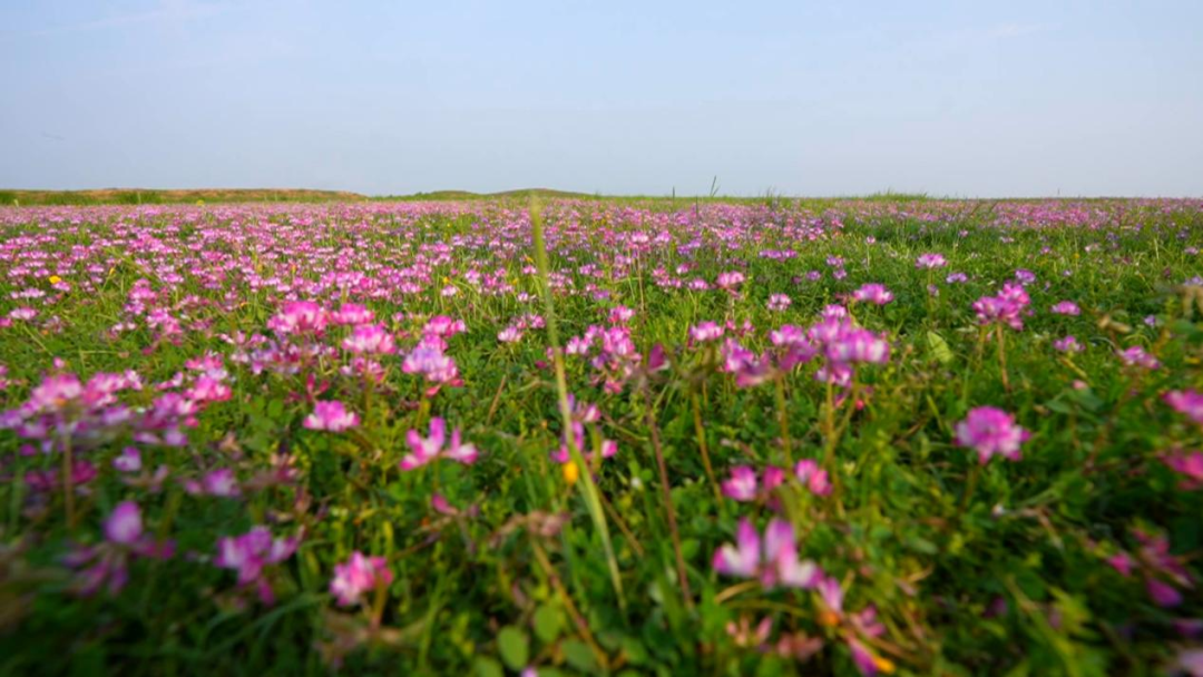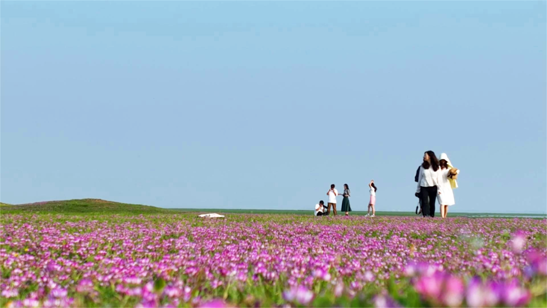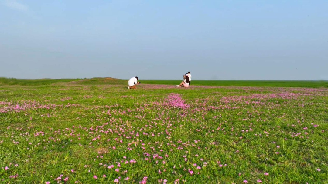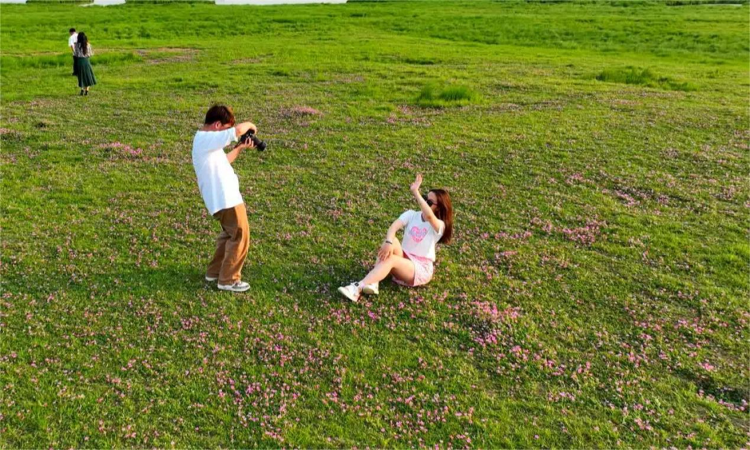 “这一大片粉紫色的花开得非常漂亮,和远处的山,还有鄱阳湖的水,以及周边这些绿油油的草,形成了一幅绝美的鄱阳湖美景,让来到这里的游客都感觉特别地心旷神怡。”杨燕群开心地说。