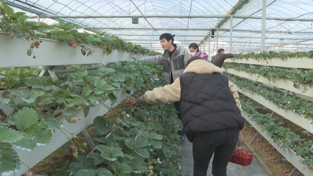 游客 彭先生:“我是觉得这种方法种植草莓很干净卫生,我刚尝了挺甜的。”