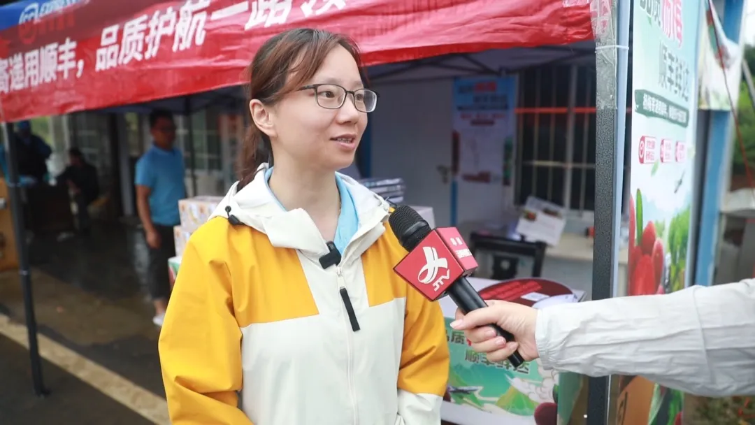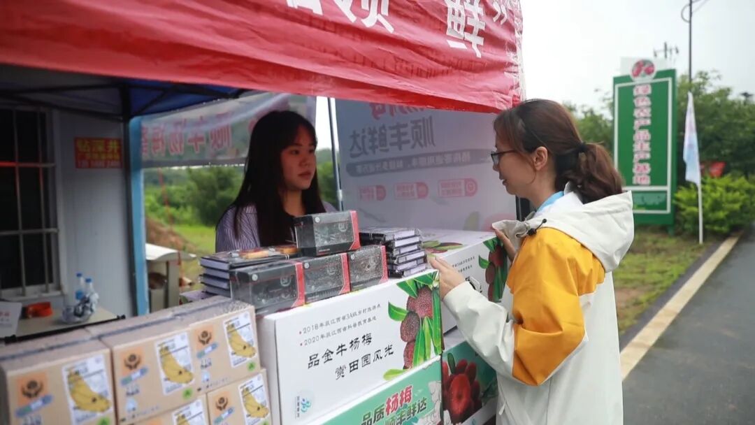 游客 潘艳婷:“今天摘了一箱杨梅,通过快递邮寄给外省的朋友,一天就能到,让我的朋友能够吃上现摘的新鲜杨梅。”