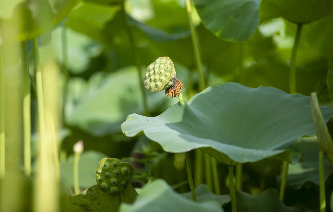 一个个沉甸甸的莲蓬随风摇曳