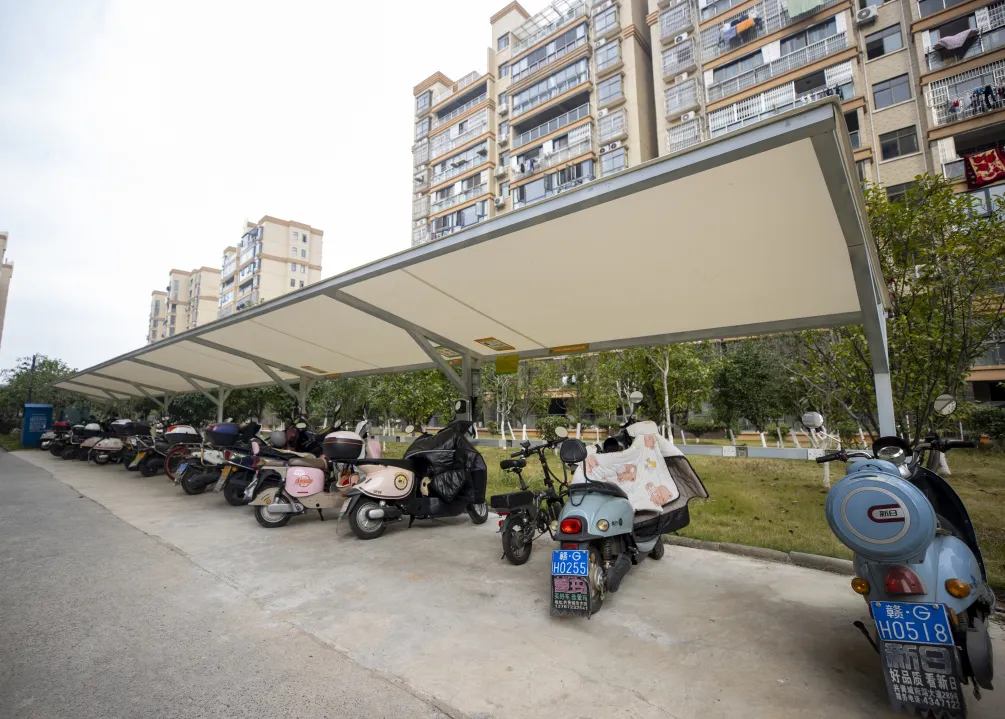 几个崭新的充电停车棚里