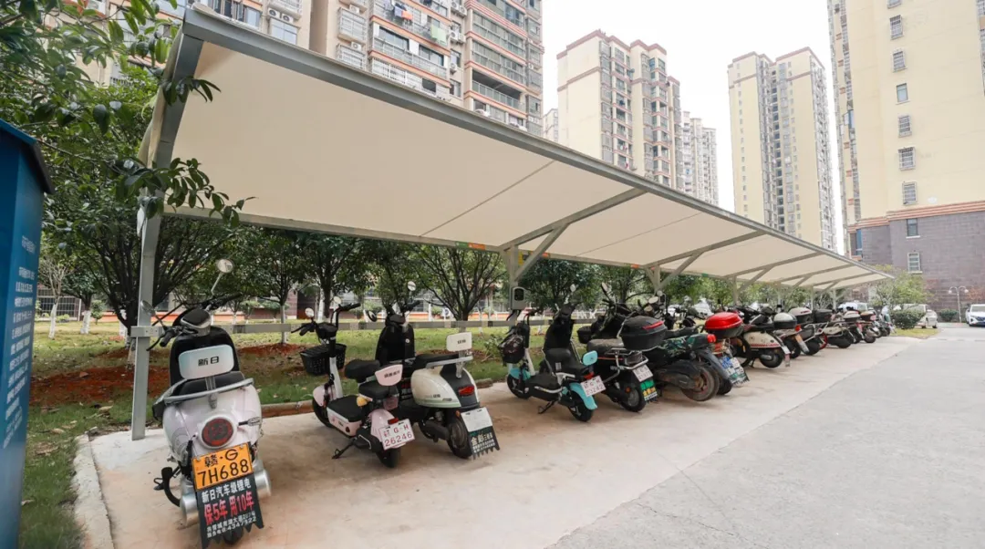 茶山街道北峰社区工作人员 胡悦:“此次车棚建设面积180平方米,可以同时容纳100余辆电动车充电。”