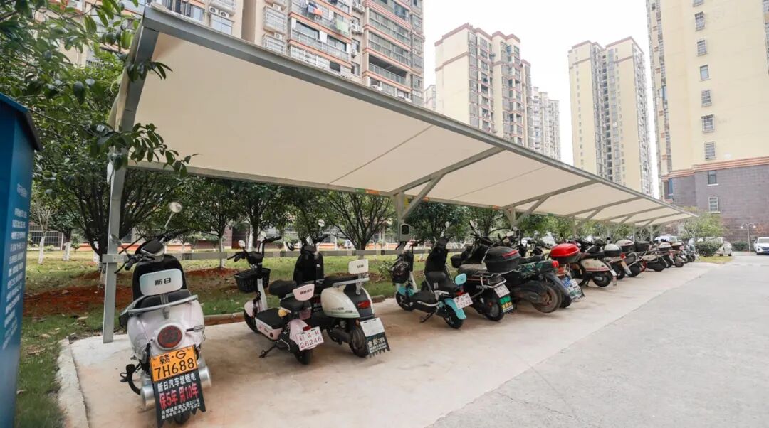 在小区内新安装了5个充电停车棚