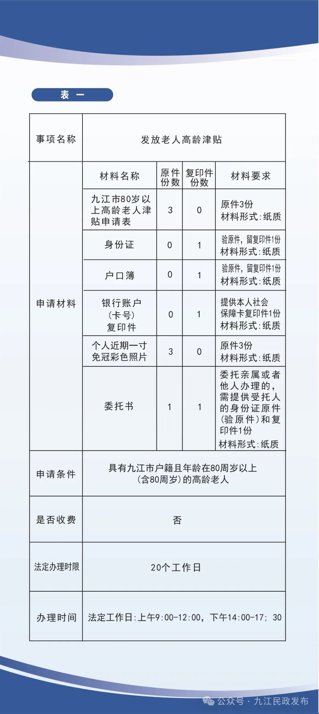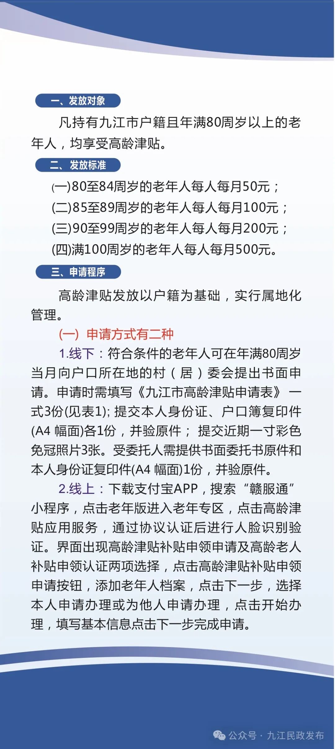 九江市80周岁以上老人高龄津贴实施办法宣传手册