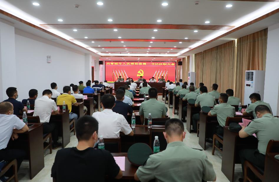 九江军分区司令员丁庆顺宣读任职决定、颁发任职通知书并讲话。共青城市委书记、市人武部党委第一书记卢治轩作表态讲话。共青城市委副书记、代市长刘阳青,共青城市委常委、人武部部长姚志平,共青城市人武部政委曹吉标等出席会议。