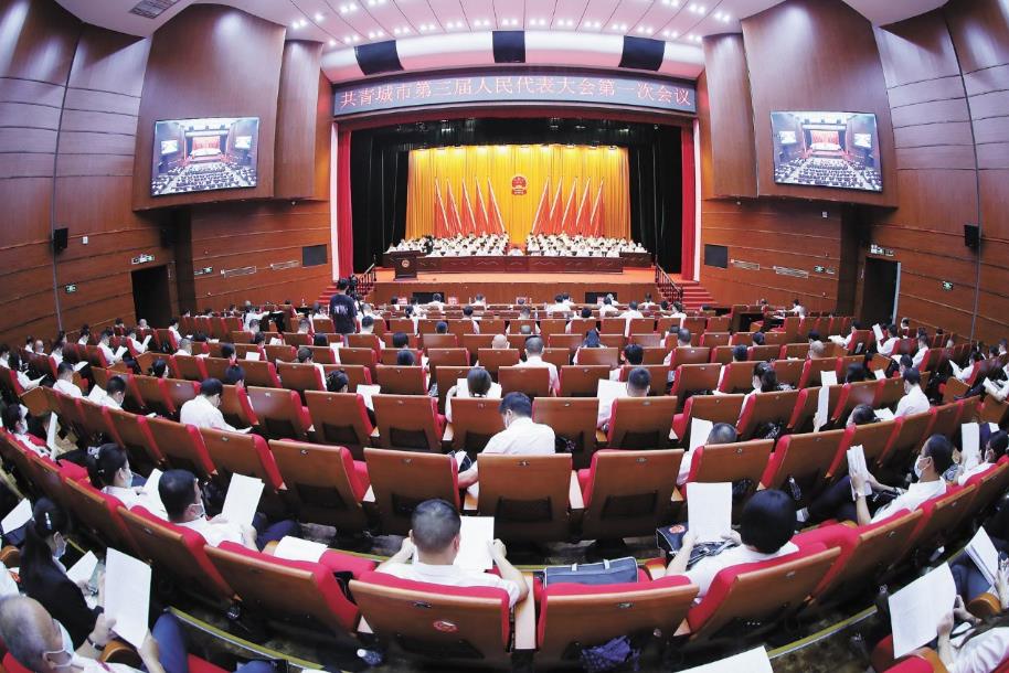 9月29日上午,共青城市第三届人民代表大会第一次会议在南湖影剧院隆重开幕。