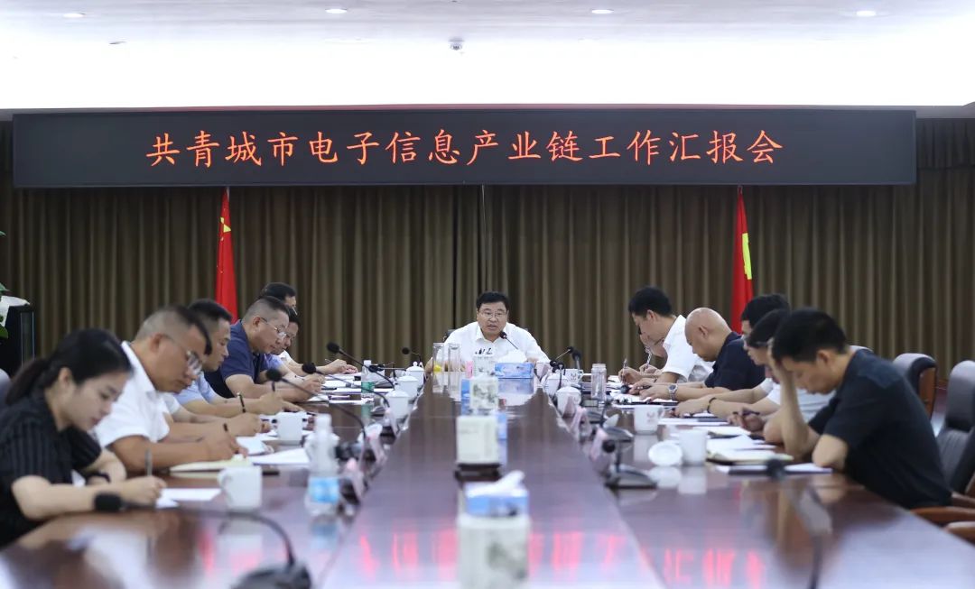 7月13日,我市召开电子信息产业链工作会,共青城市委书记卢治轩主持会议并讲话,共青城市委副书记、市长刘阳青,市领导陶智化参加会议。