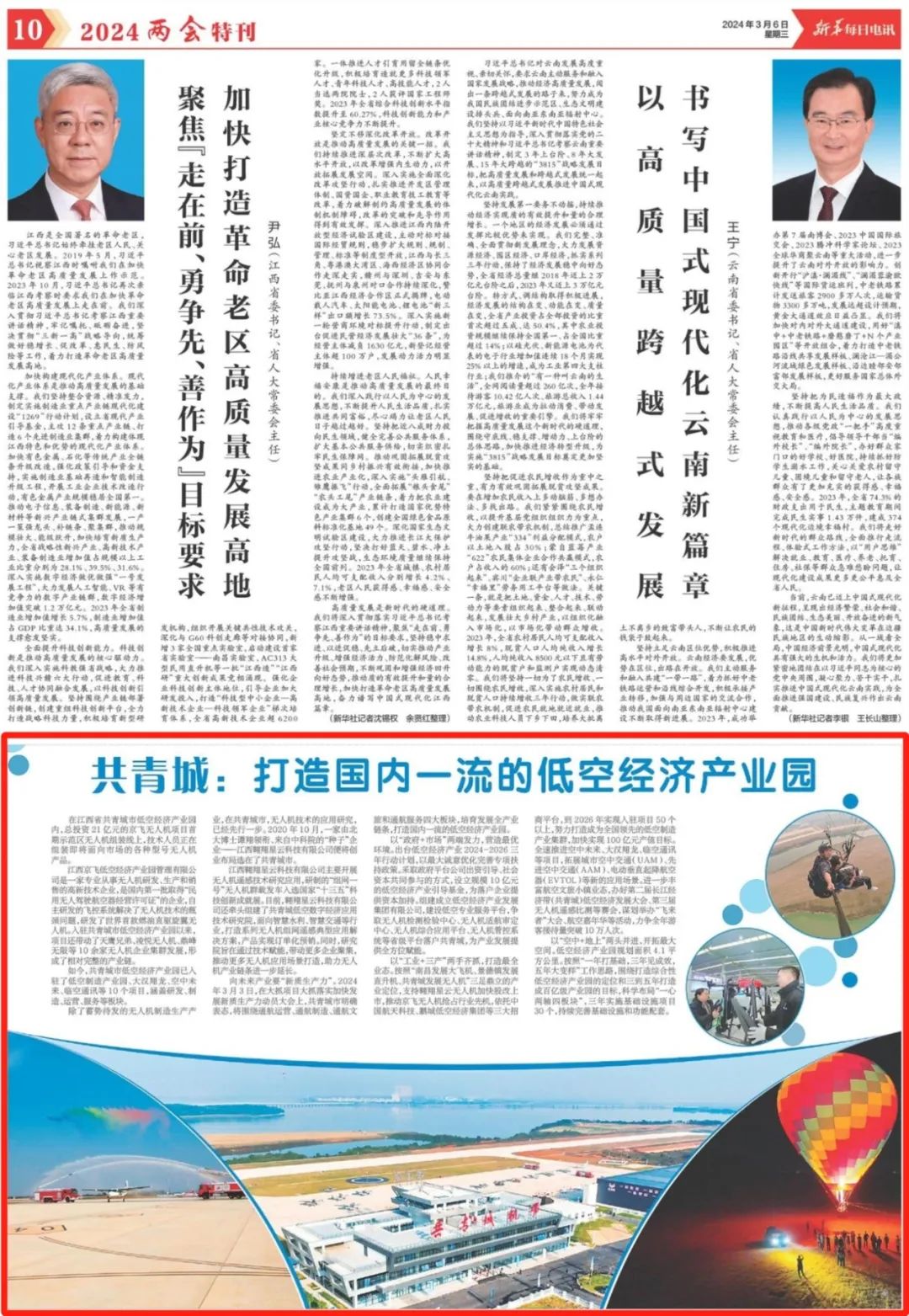 如今,共青城市低空经济产业园已入驻了低空制造产业园、大汉翔龙、空中未来、临空通讯等10个项目,涵盖研发、制造、运营、服务等板块。