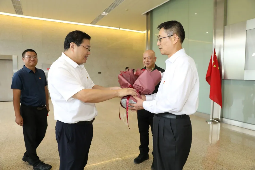 7月1日,市委书记卢治轩来到江中食疗科技有限公司,看望慰问载誉归来的谢明勇院士及其专家团队,市委副书记、市长刘阳青,市领导陶智化、戴轶苏参加活动。