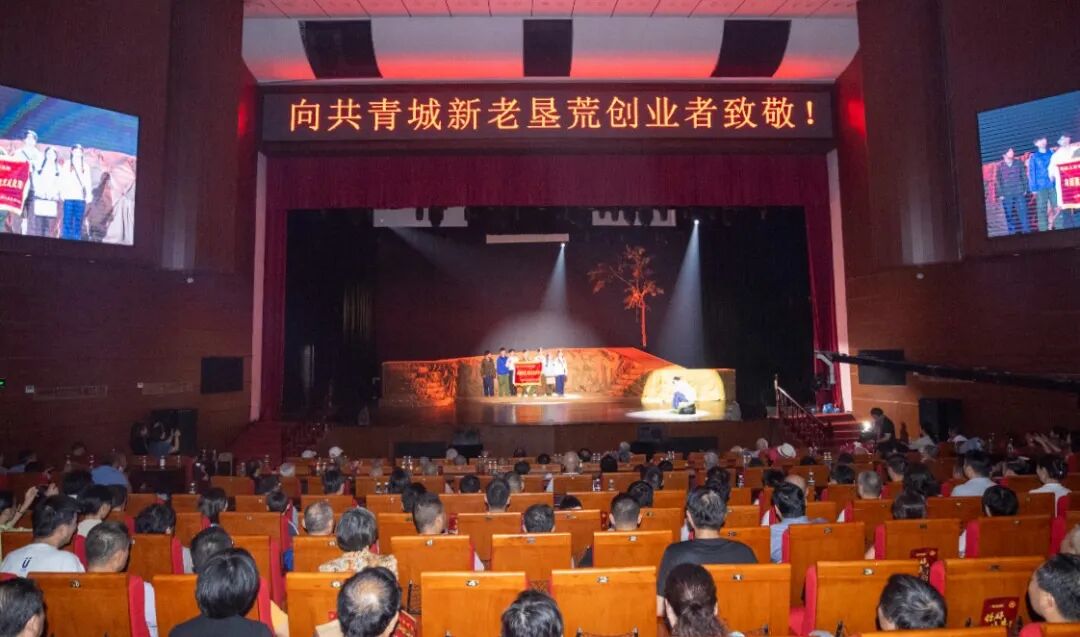10月17日晚,共青城新老垦荒队员、社会各界代表怀着无比激动的心情相聚在市工人文化宫,观看话剧《你好 共青!》。