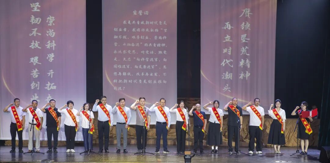 共青城市各界优秀代表举起右拳,共同宣誓,表示要传承弘扬共青精神,永远感党恩、听党话、跟党走,矢志“向科学进军、向困难进军、向荒原进军”,思想再解放,改革再出发,不断把新时代垦荒创业推向前进。