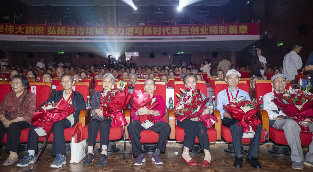 在欢快的迎宾曲中,老垦荒队员进入会场,全体在场人员起身站立,报以热烈的掌声。70 年前,他们扛着锄头、顶着风雨、迎着烈日,在荒芜的土地上播撒希望;70 年后,新一代共青人用掌声化作敬意,以最隆重的方式,迎接这群“共青城的奠基人”。当老垦荒队员们在登上舞台后,少先队员代表向他们献上了鲜花,共青城市各界优秀代表为老垦荒队员佩戴“垦荒创业70周年纪念章”。这枚刻着70载风雨纹路、映着“荒滩建起新城”奇迹的勋章,承载着共青人永远的铭记。