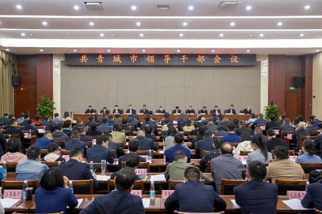 10月27日,全市领导干部会议召开,传达学习党的二十届四中全会精神,及全省、九江市领导干部会议精神,安排部署我市学习宣传贯彻工作。受市委书记万建明委托,市委副书记、市长刘阳青主持会议并讲话。市委副书记熊则徐,市人大常委会主任况泉水,市政协主席杨祖荣,赣江新区共青组团管委会专职主任汪玉贵,九江共青城高新区管委会主任陶智化,市领导戴轶苏、肖磊、熊莎、胡胃东、郑斌、鄢俊彬等市四套班子领导、赣江新区共青组团和九江共青城高新区班子成员、市法院院长出席会议。