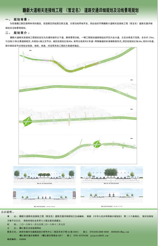 赣新大道相关连接线工程(暂定名)道路选址规划论证、赣新大道相关连接线工程(暂定名)道路交通详细规划及沿线景观规划公示