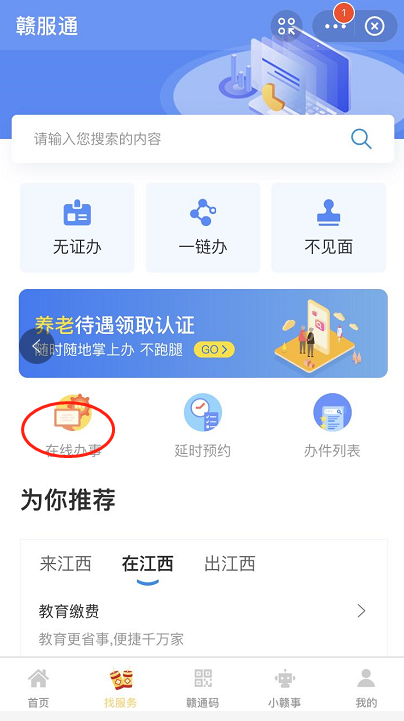 在支付宝APP页面搜索“赣服通”,点击进入“共青城市”分厅,下拉选择“找服务”点击“在线办事”,即可实现321项事项“掌上办”。
