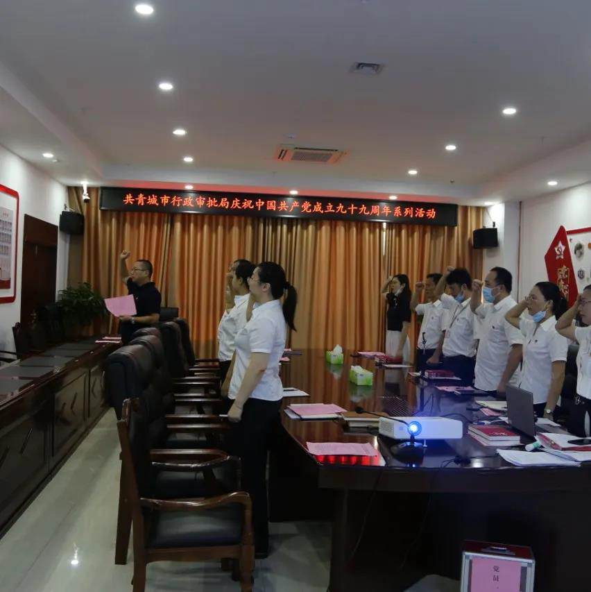 为庆祝中国共产党成立99周年,深入学习贯彻习近平新时代中国特色社会主义思想和全国两会精神,7月1日,共青城市行政审批局党总支开展了庆祝中国共产党成立99周年系列活动。