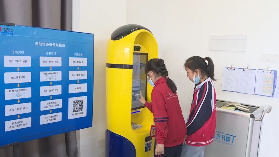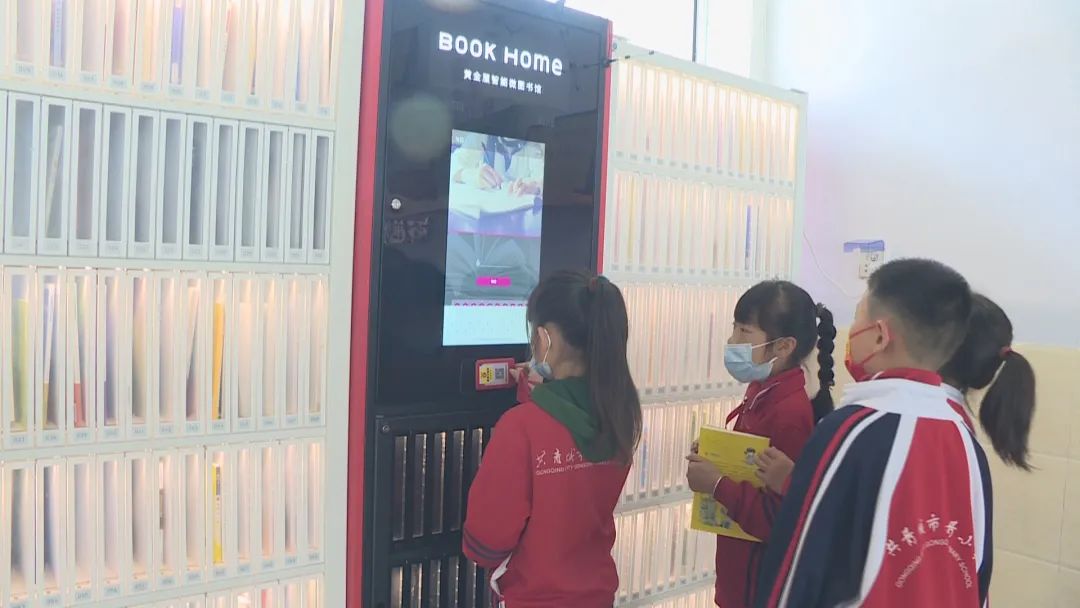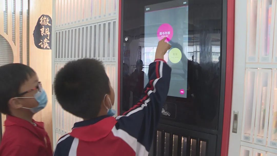 在共青小学,学校进一步拓宽教育信息化广度,打造数字+图书馆,营造浓厚的读书氛围。学校把读书亭、智能书屋、自助借书机等数字化设备放置在走廊、读书角等场所。
