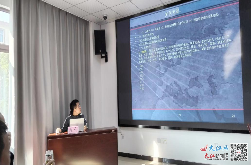 此次培训由公共场所科闵天主讲,他将公共场所相关卫生法律法规、标准规范与执法实践进行有机结合,系统讲解了公共场所卫生法律法规、标准规范以及各类公共场所基本卫生要求。对公共场所卫生法律法规处罚条款进行详细解读,并引用不同案例结合相关法律条文进行深入学习。同时,利用典型案例对常用执法文书的书写进行重点讲解和指导。最后针对大家提出的困惑进行了答疑。