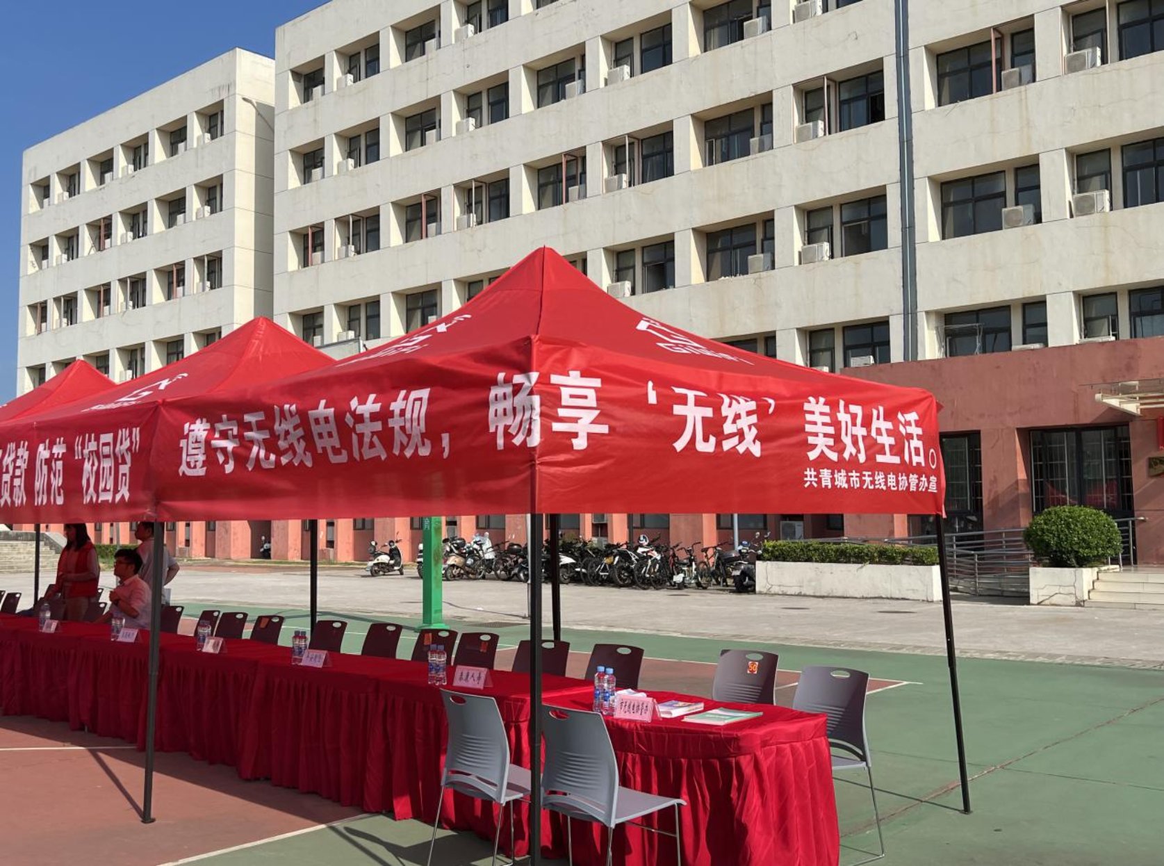 活动宣传现场通过悬挂条幅,摆放宣传展板,发放《中华人民共和国无线电管理条例》手册、无线电宣传漫画等宣传资料、派送小礼品等形式,介绍无线电法律法规,展示无线电在经济社会发展的重要作用。向学生解读法律法规,以普及无线电频谱资源常识和法律法规知识、强化公众依法用频设台意识、提升无线电管理工作在社会上的认知度和影响力。
