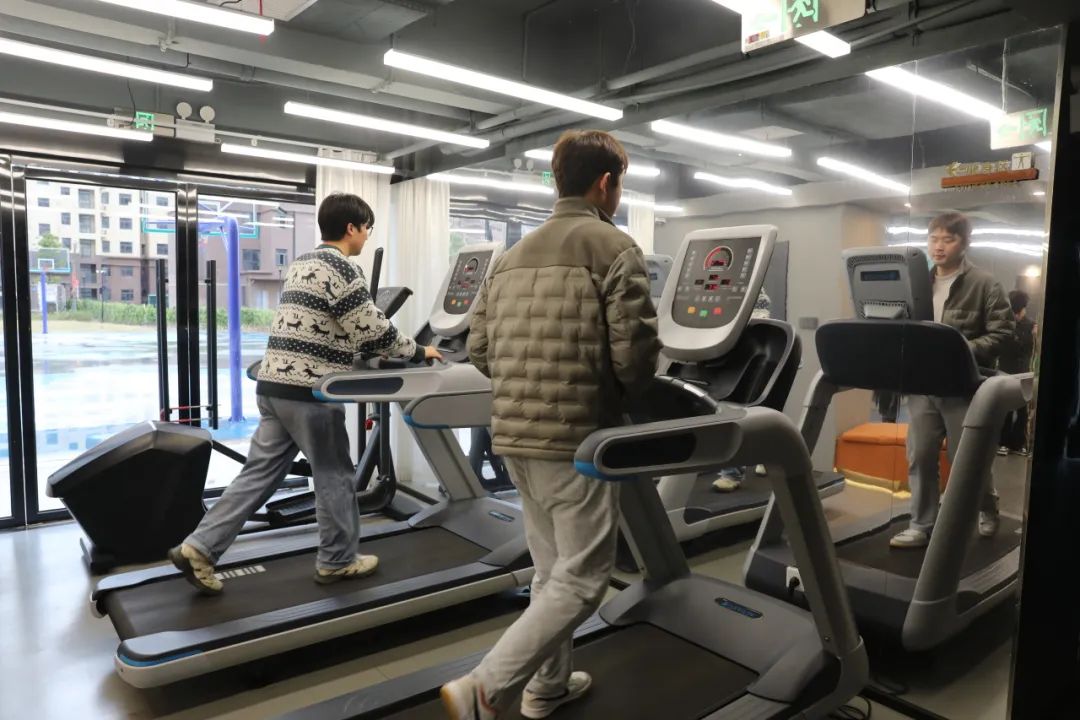 连金才趁着空闲时间在公共活动区锻炼