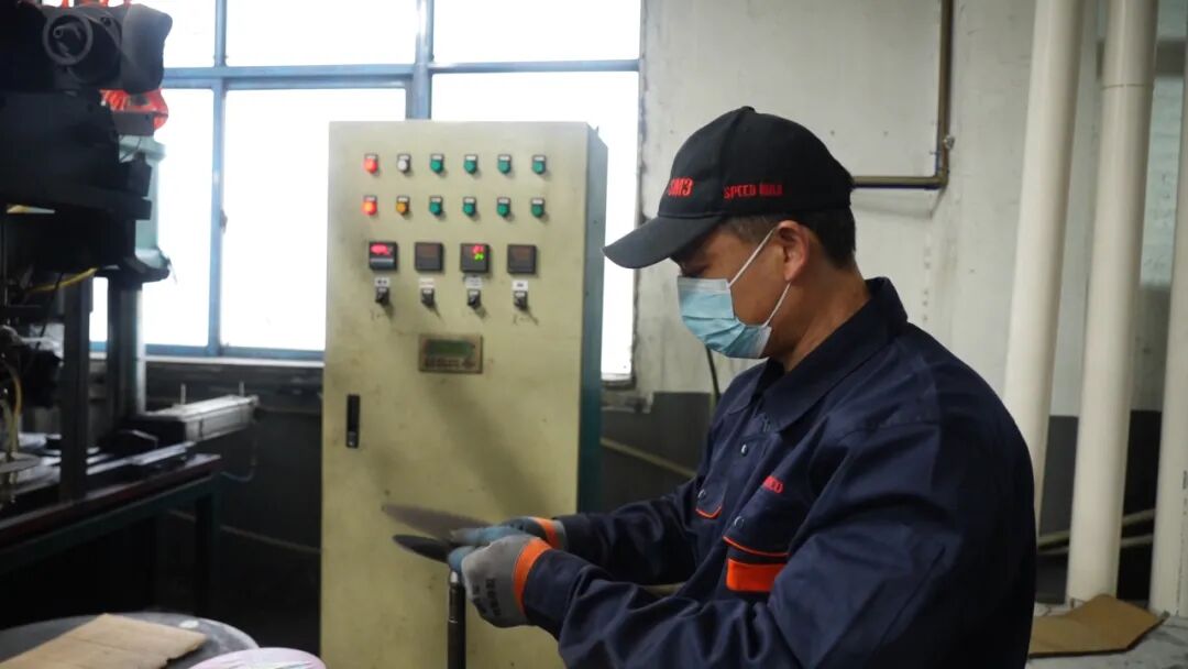 过了试用期的熊清水认真地堆码砂轮片