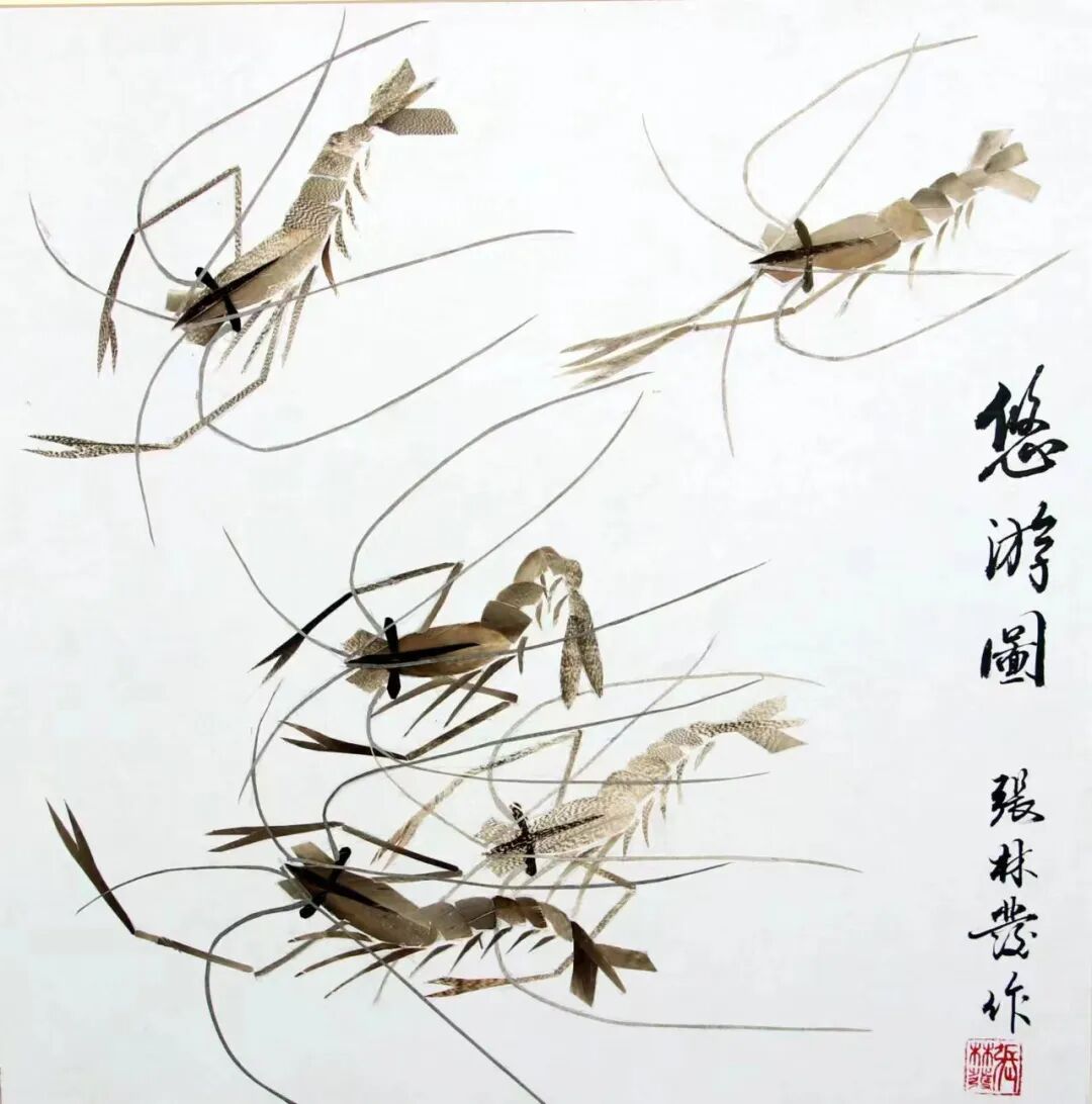 羽毛画是以禽鸟类羽毛为原材料,经人工处理消毒风干后,借助国画的笔墨情趣,通过精心设计、修剪和粘贴等手法制作而成的作品。“远观似水墨,近观如刺绣”,张林发这样形容自己的作品。今年70岁的张林发创作羽毛画有40年了,在国画基础上再度创作而成的羽毛画逼真形象,自成一派。