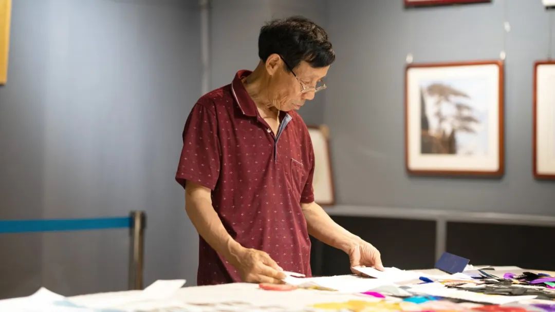 经过烘干的羽毛贴在宣纸上,然后便是修剪。特制的弯头小剪在张林发指间灵活翻转,剪羽如写小楷,一笔错则满盘废。他指着一幅《松鹤图》丹顶鹤的尾羽介绍道,“每根羽毛末端都要剪出27个锯齿状细痕,才能呈现出展翅时的飘逸感。”