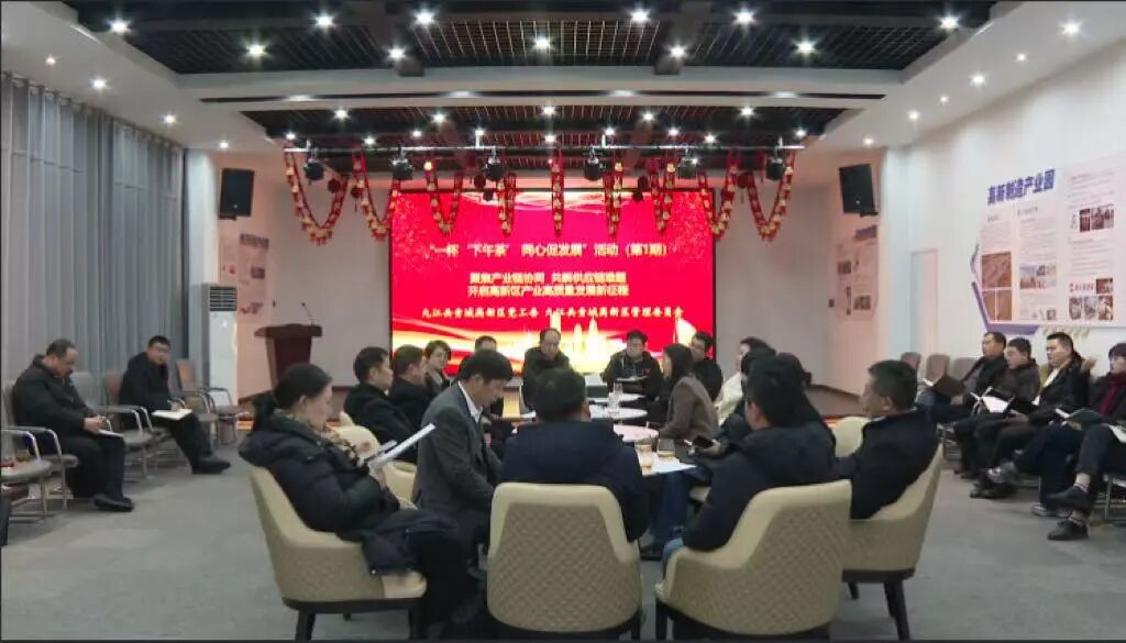 如果说 “走进门” 是主动服务,那 “请进来” 便是共青城政企沟通的另一重巧思。每周五,九江共青城高新区党工委举办的“下午茶” 恳谈会都会准时开始。