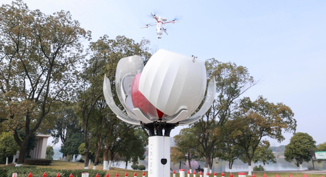 不止于生活服务,低空技术也在重塑城市治理。在共青城市区的公园、湖岸线上空,形如“宝莲灯”的全自动无人机持续巡飞。它们如同 “天空之眼”,实时监测安全隐患、违规垂钓等问题,助力城市运行更安全、更有序。