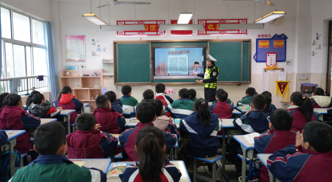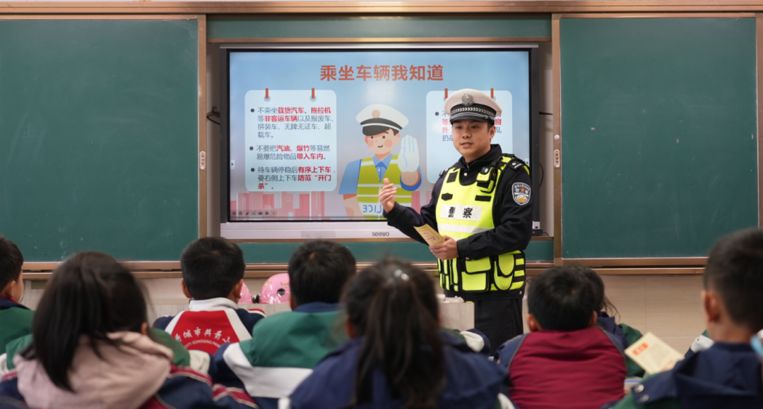 3月2日,市公安局交管大队交警走进共青小学,为学生们带来一堂生动的“开学第一课”。