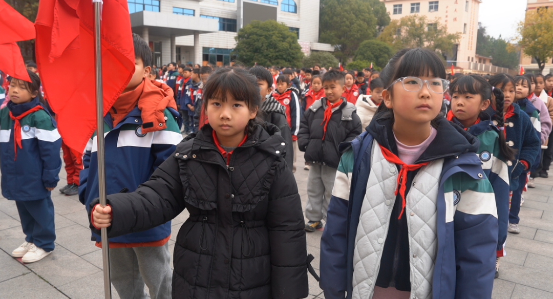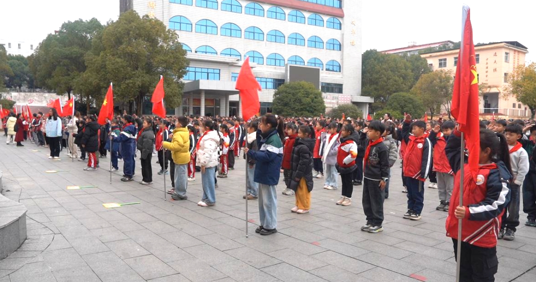 伴随着雄壮的《义勇军进行曲》,五星红旗冉冉升起,全体师生肃立高唱国歌,爱国情怀洋溢校园。
