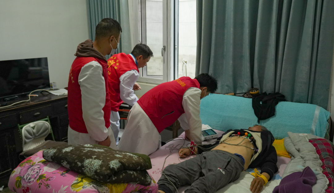 泽泉乡花园村村医潘隆楷说:“我们上门给他们量血压、测血糖,指导他们用药。一个礼拜内再进行随访,要是血压还是高,我们就建议他们到上级医院调整治疗方法。”