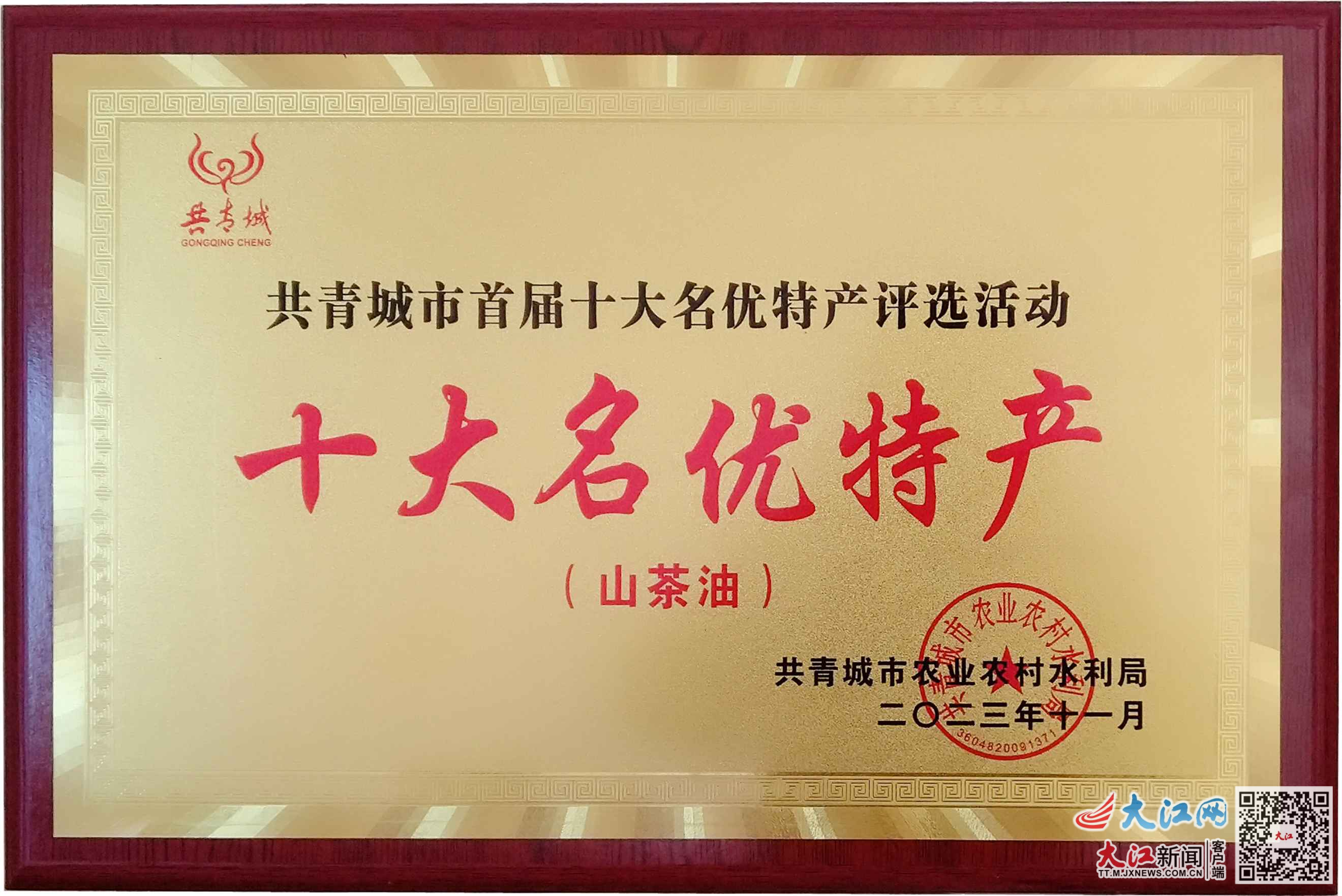 共青城市江益镇山茶油获评十大“名优特产”