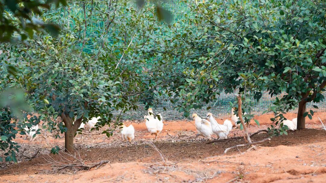 南昌大学生命科学学院副研究员 张剑:“油茶它在生长过程中,一个就是它的虫害,另外一个就是草害,油茶底下套养乌鸡,去控制这个虫害,就是提升这块土地的整体利用率,那么至于为什么用茶枯去喂鸡呢,这也是源于我们的生态学的理念,生态学讲究物质循环,尽可能地将产出来的产品,全部在这个系统里面进行一个轮回。”