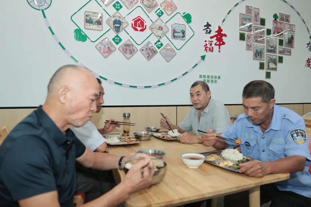 “食堂一开张就有很多老人过来就餐。”金湖乡固村村委会工作人员袁震表示,食堂还配备了空调,冬暖夏凉,环境卫生干净整洁,根据老年人的饮食需求,设计了多款营养均衡的食谱,让老人吃得放心、舒心。