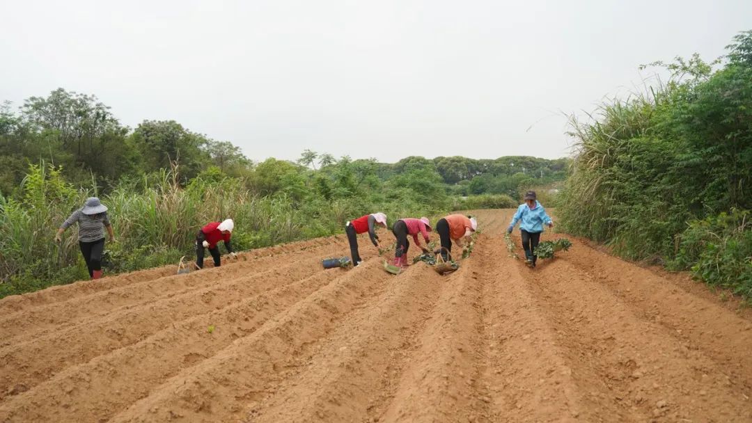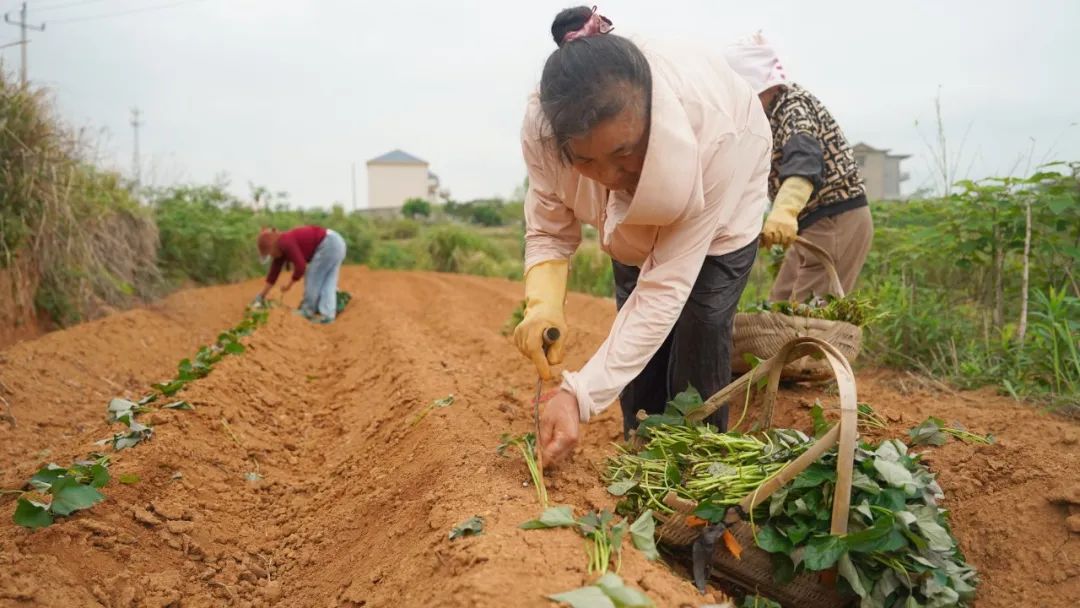 有的将薯苗栽种在土壤中